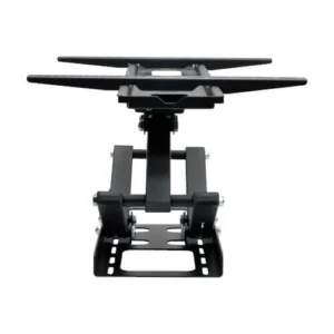 A heavy-duty signage stand supporting 37″ displays with adjustable height and tilt for optimal visibility.