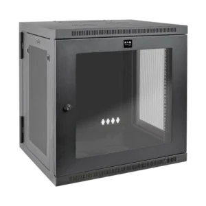 The Eaton SRW12USDP SmartRack 12U wall-mount rack supports UPS-depth equipment, combining strength, accessibility, and security for tight-space IT setups.