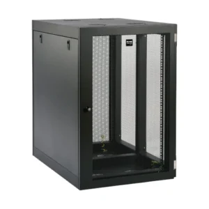 Compact 12U wall-mount rack providing secure mounting and efficient cable management for small IT setups.