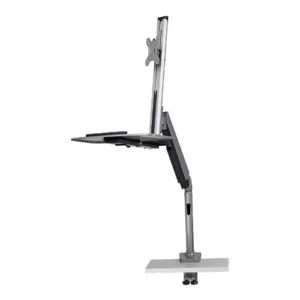 Height-adjustable sit-stand workstation enhancing comfort and productivity in modern offices.