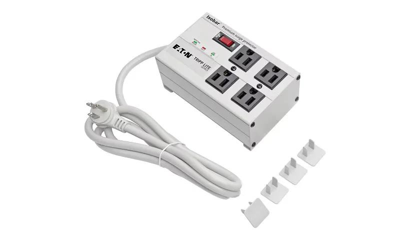The Eaton ISOBAR4ULTRA provides premium surge protection with four outlets and a 6-foot right-angle cord. Designed with isolated filter banks, it eliminates EMI/RFI interference to ensure clean power for sensitive electronics.