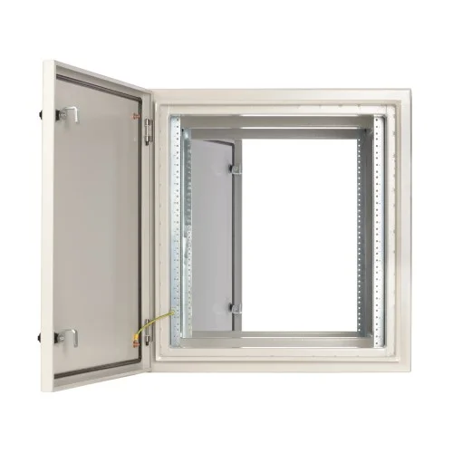 This industrial enclosure offers NEMA 4 protection, ensuring resistance to dust, water, and harsh environmental conditions. It secures IT and electrical equipment in demanding industrial settings. Featuring lockable access, strong construction, and corrosion resistance, it is built for factories, warehouses, and outdoor installations requiring rugged reliability.