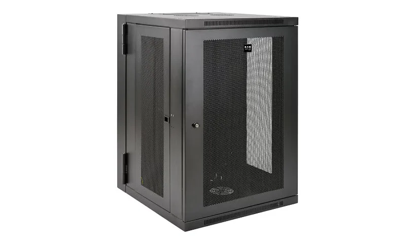 Eaton SRW18USDP SmartRack 18U half-height wall-mount rack offers secure housing for UPS-depth equipment with easy access and enhanced ventilation.